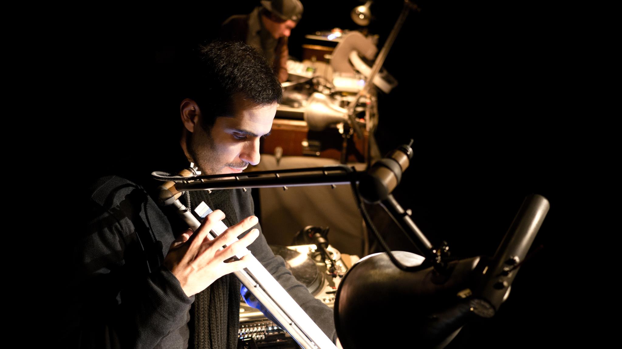 Il y a eu une importante évolution technique dans notre travail. Lors de nos premiers concerts, nous arrivions avec une pile de soixante disques sur lesquels on mettait des petits repères pour aller chercher les sons dont nous avions besoin. Maintenant, tout est numérique. Nous créons notre propre banque de sons, en enregistrant un peu tous les jours. Sans savoir d’emblée ce que nous en ferons, comment nous allons piocher dedans ensuite. Beaucoup de sons sont joués par nous même, surtout la percu. Les autres, nous les avons enregistrés au fil de nos rencontres, entre 2006 et 2012. Nous avons chacun eu notre propre parcours en parallèle, en jouant avec des groupes hybrides. Sur notre disque, ça doit représenter une vingtaine de musiciens.